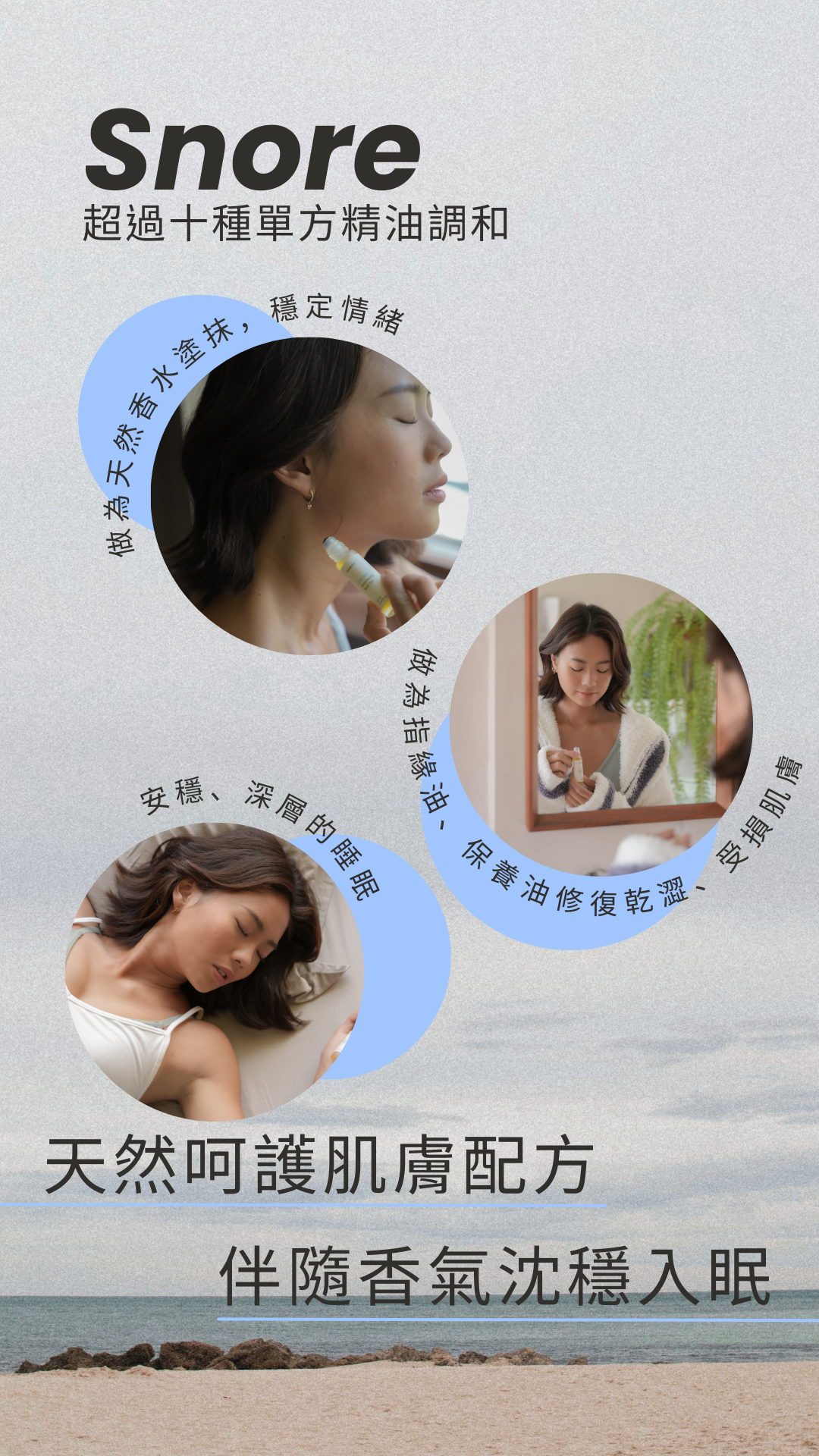 主理人Christine自己習慣將Snore滾珠精油棒塗抹在人中及手腕位置,耐聞溫和的木質調香氣,想要持續在生活裡聞到。